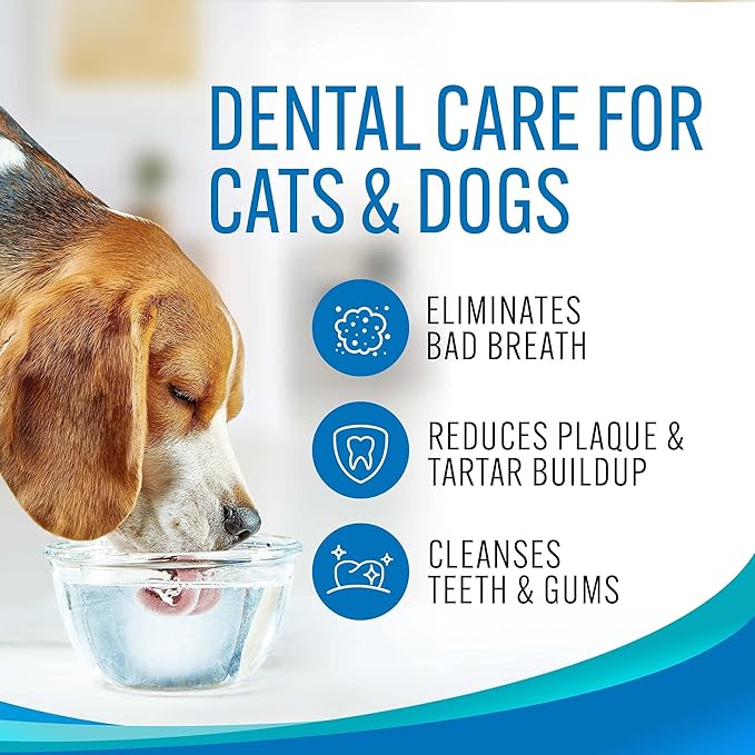 • Eliminates Bad Breath In Dogs & Cats - Odor causing material builds up in your pet's mouth causing bad breath and possible tooth damage. Our effective water additive formula is like a dog tooth brushing kit and dog teeth cleaning kit all in one. You don't have to worry about a cat toothbrush, dog toothbrush, or even a dog mouthwash when you use our cat and dog water additive for dental care. Our dog and cat health supplies are a vital part of your pet's oral care routine
