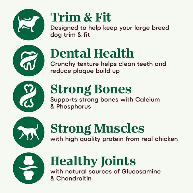 • Key Benefits: This large breed dry dog food recipe supports healthy skin & coat, strong bones, strong muscles and dental health.