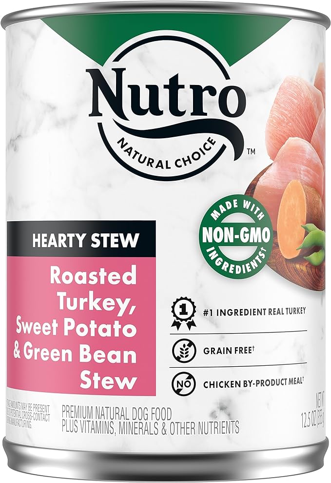 NUTRO HEARTY STEW Adult Natural Grain Free Wet Dog Food Cuts in Gravy Roasted Turkey, Sweet Potato & Green Bean Stew (12) 12.5 oz Cans