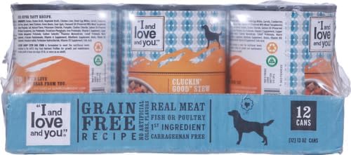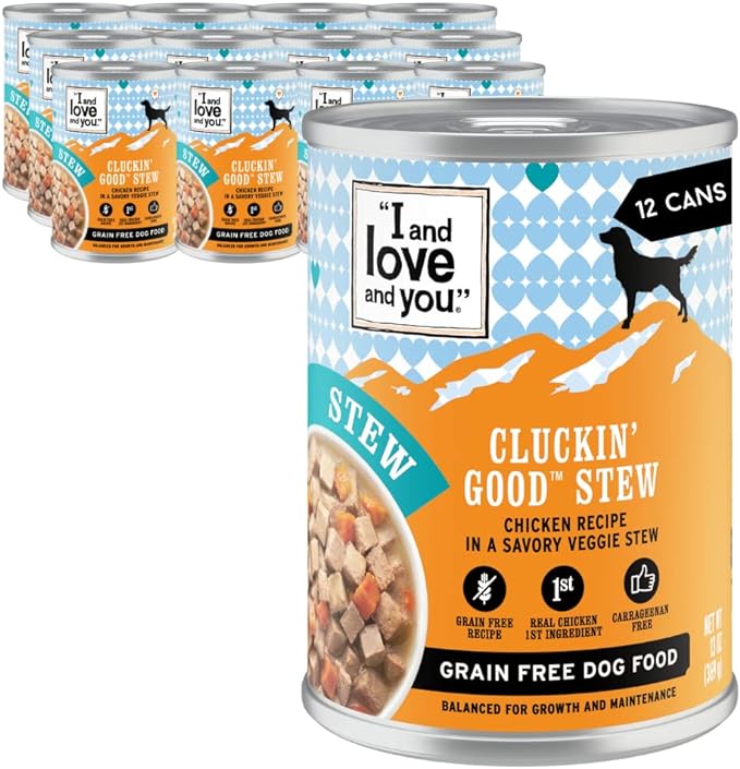 I AND LOVE AND YOU Wet Dog Food - Cluckin' Good Stew - Chicken Recipe, Grain Free, Filler Free 13oz can, 12pk