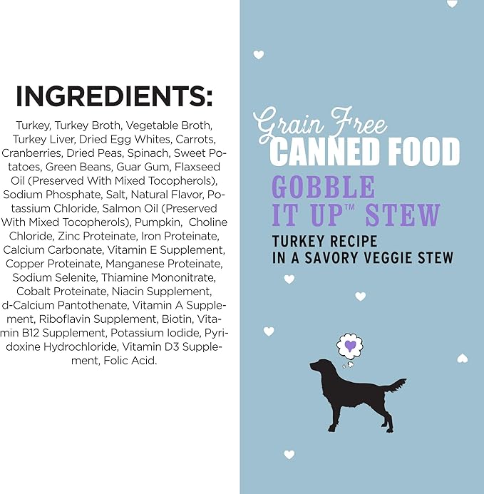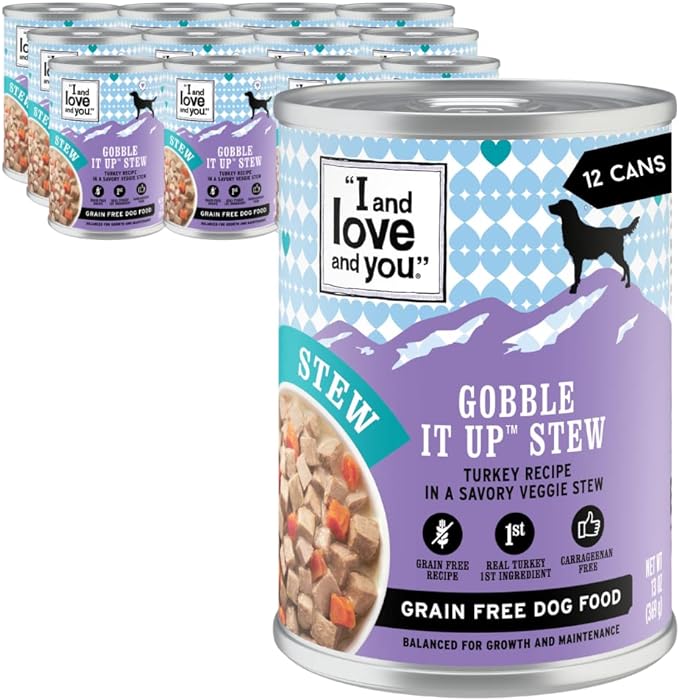 I AND LOVE AND YOU Wet Dog Food - Gobble It Up Stew - Turkey Recipe, Grain Free, Filler Free 13oz can, 12pk