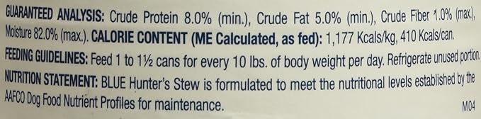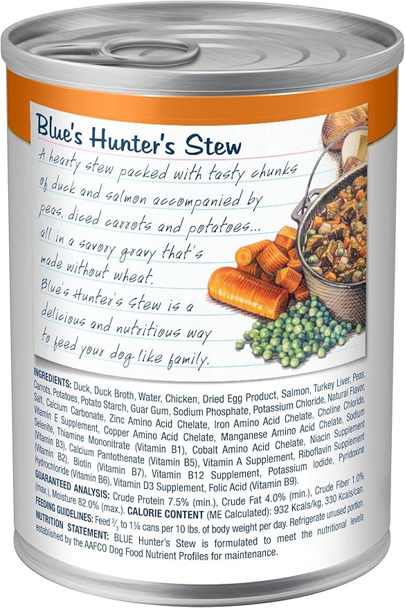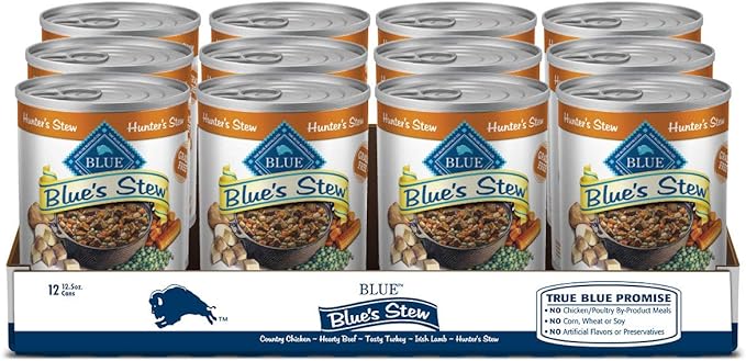 • Contains twelve (12) 12.5-oz cans of Blue Buffalo Blue's Stew Natural Adult Wet Dog Food, Hunter's Stew