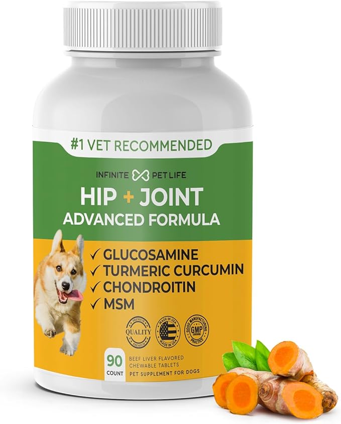 Advanced Hip & Joint Formula - 90 Mobility & Pain Relief Dog Chews - Glucosamine, Chondroitin, MSM, & Turmeric for Superior Joint Health