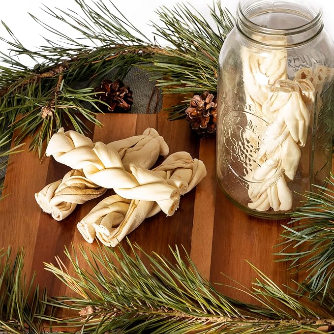 • MADE IN USA: Our beefhide braid sticks are made from thick, 100% natural rawhide sourced from American-raised, corn-fed cattle; they are crafted and processed in the USA for maximum quality and safety, and contain no dangerous additives or preservatives