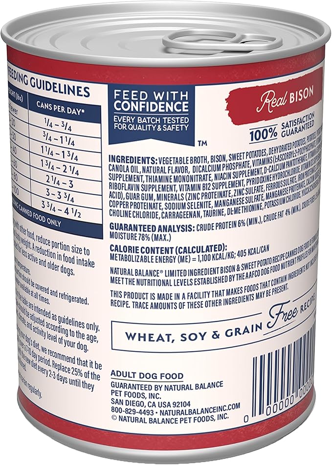 Natural Balance Limited Ingredient Adult Grain-Free Wet Canned Dog Food, Reserve Bison & Sweet Potato Recipe, 13 Ounce (Pack of 12)