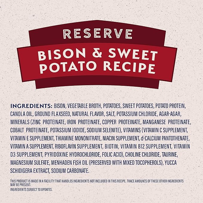 • NUTRIENTS FROM OUR BISON & SWEET POTATO RECIPE crafted with nutritious ingredients such as vegetable broth and sweet potatoes; Complete and balanced with essential nutrients to help maintain your dog's healthy immune system