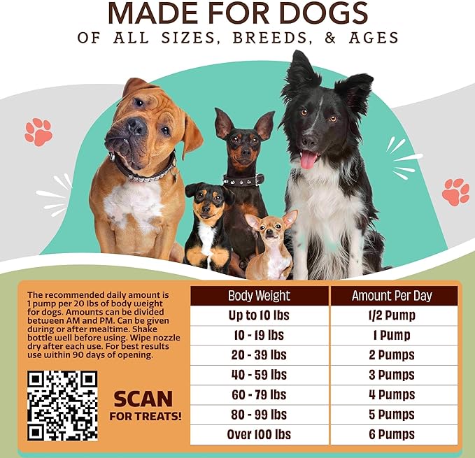 • Suitable for All Breeds and Sizes: Our dog supplement is crafted with naturally derived ingredients and is free from harmful chemicals or additives. It is safe for dogs of all ages, sizes, and breeds prone to hip and joint issues, such as labs, golden retrievers, and large breeds. Keeping your furry friend healthy and active has never been easier – simply shake the bottle well and pump!