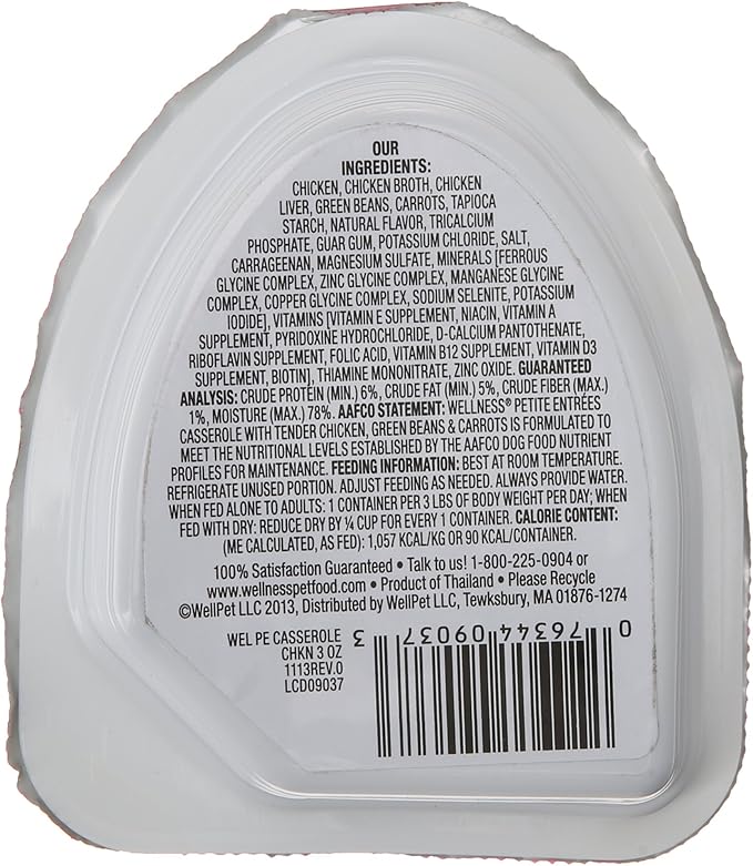 Wellness Petite Entrees Casserole Natural Grain Free Wet Small Breed Dog Food, Tender Chicken, 3-Ounce Cup