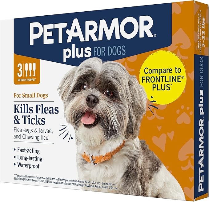 PetArmor Plus Flea and Tick Prevention for Dogs, Dog Flea and Tick Treatment, 3 Doses, Waterproof Topical, Fast Acting, Small Dogs (5-22 lbs)