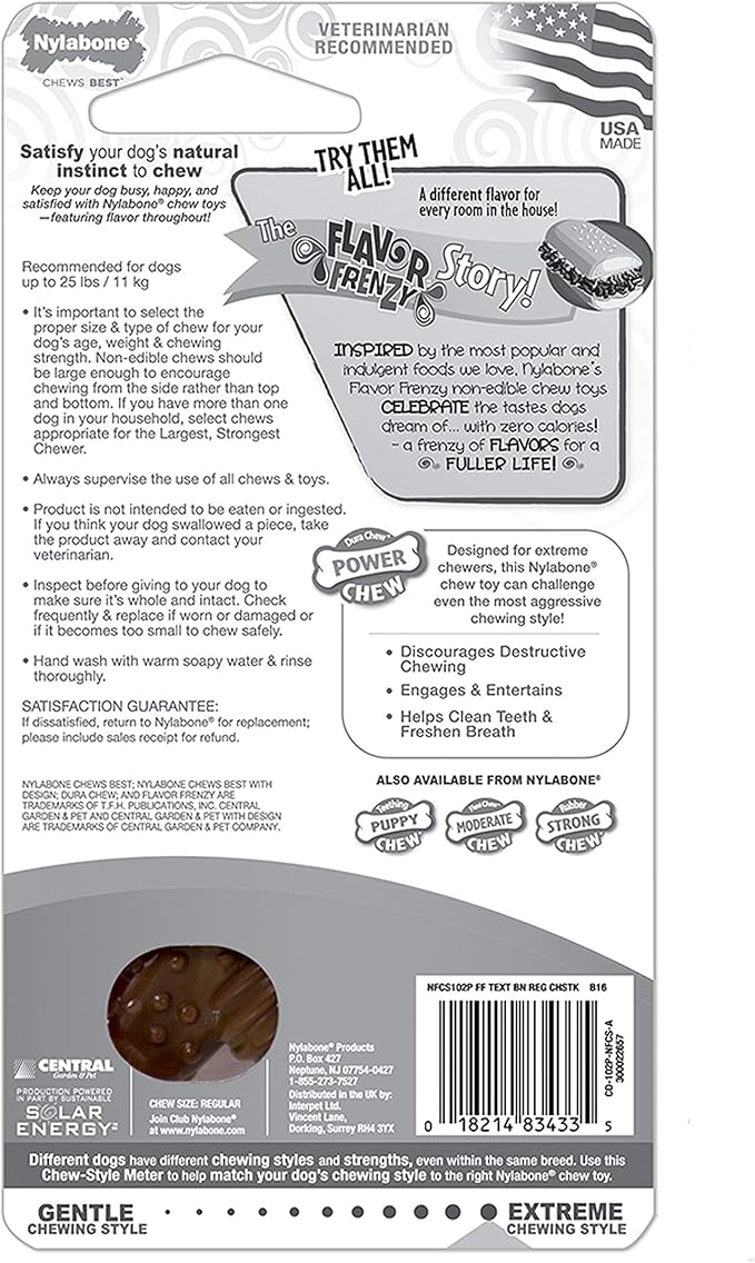 Nylabone Power Chew Flavor Frenzy Dental Bone Chew Toy for Dogs, Indestructible Chew Toys for Aggressive Chewers, Philly Cheesesteak Flavor, Small/Regular - Up to 25 Ibs. (1 Count)