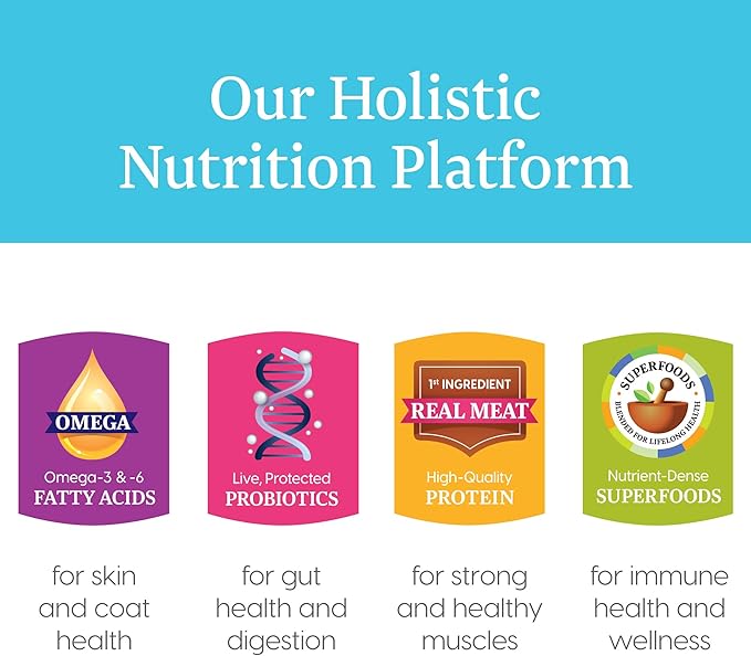 • Nutrition For Lifelong Health & Longevity: Balanced Omega Fatty Acids For A Soft & Shiny Coat. Superfoods Provide Natural Vitamins, Minerals & Antioxidants For Immune Health.
