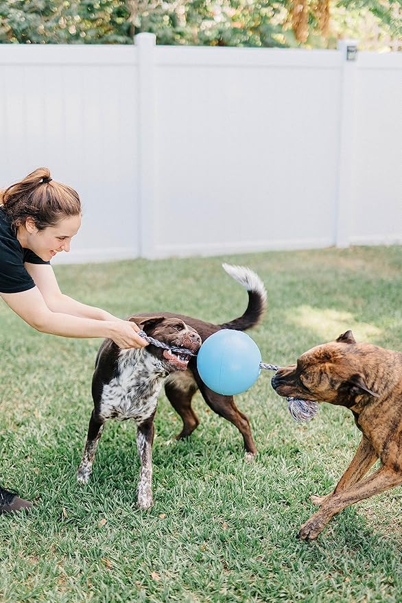 • Designed to be tugged, thrown, carried & launched: The Romp-N-Roll features an Easy Grip rope for hours of outdoor play. The rope can be pulled back and forth through the ball, but never comes out