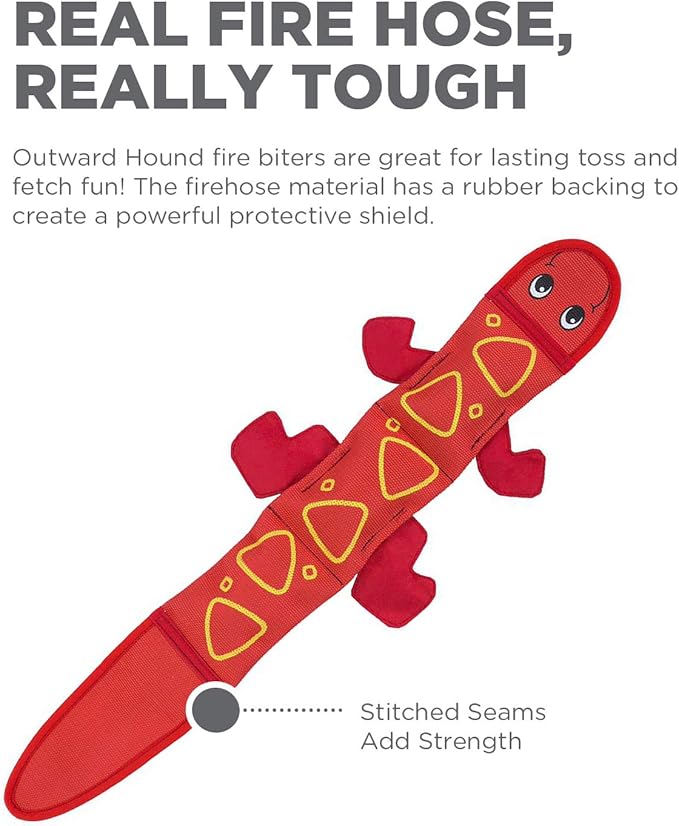 Outward Hound Fire Biterz Red Lizard Plush Firehose Material Interactive Dog Toy, Large