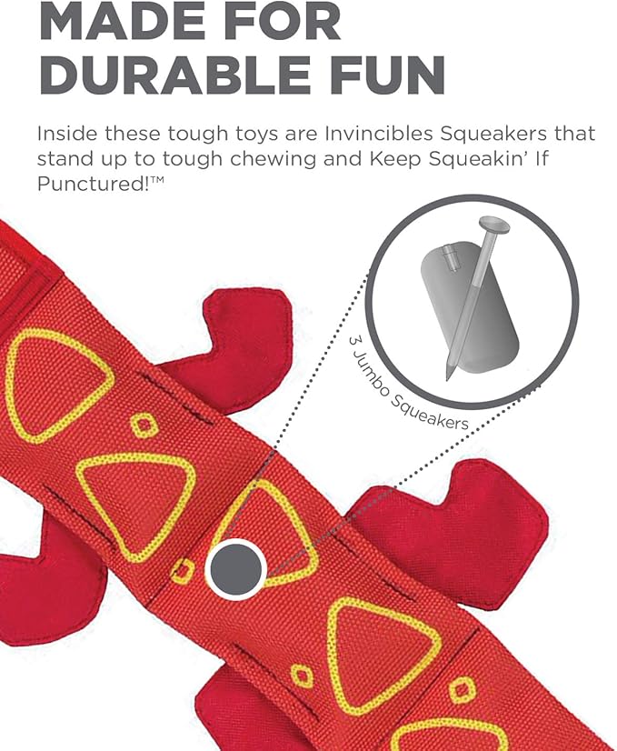 • KEEPS SQUEAKIN' IF PUNCTURED: The Fire Hose Biterz plush dog toy collection includes our signature Invincibles squeaker that continues to provide your dog with the enticing squeak they love even after being punctured.