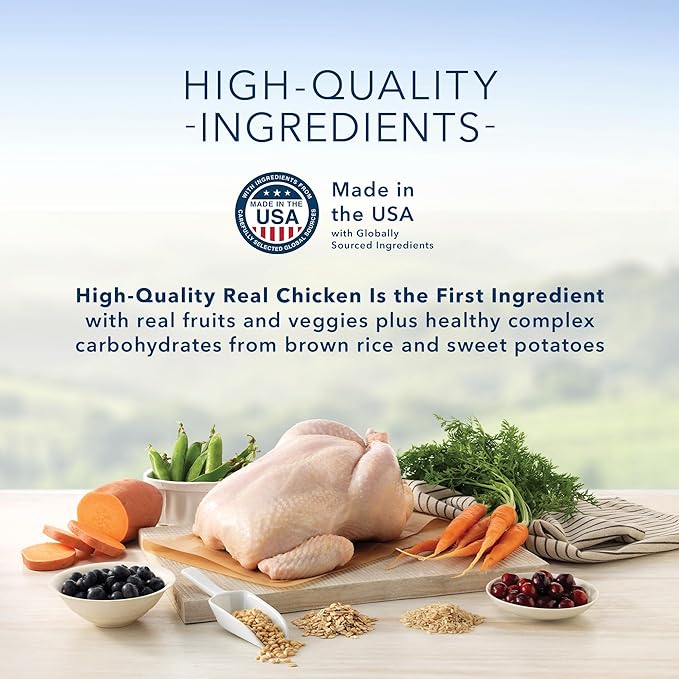 • REAL MEAT FIRST: Blue Buffalo foods always feature real meat as the first ingredient; High-quality protein from real chicken helps your dog build and maintain healthy muscles; Plus they contain wholesome whole grains, garden veggies and fruit