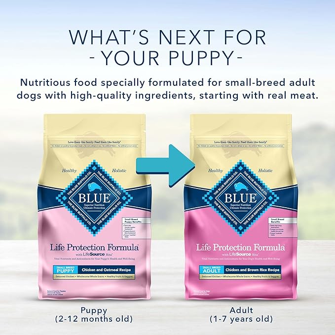 • FOR SMALL BREED PUPPIES: BLUE Life Protection Formula Small Breed Puppy Food supports healthy growth and contains DHA and ARA (important fatty acids found in mother’s milk) to support cognitive function and retinal health