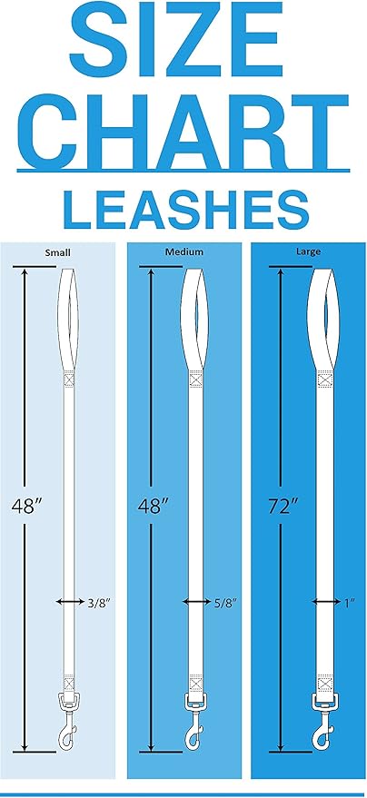 • · ✔ SIZE - Available in 3 SIZES; Small, Medium and Large DOG Leash. Please refer to the illustrated Size Chart located in the image under this item to avoid returns & frustration
