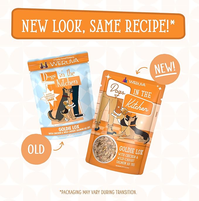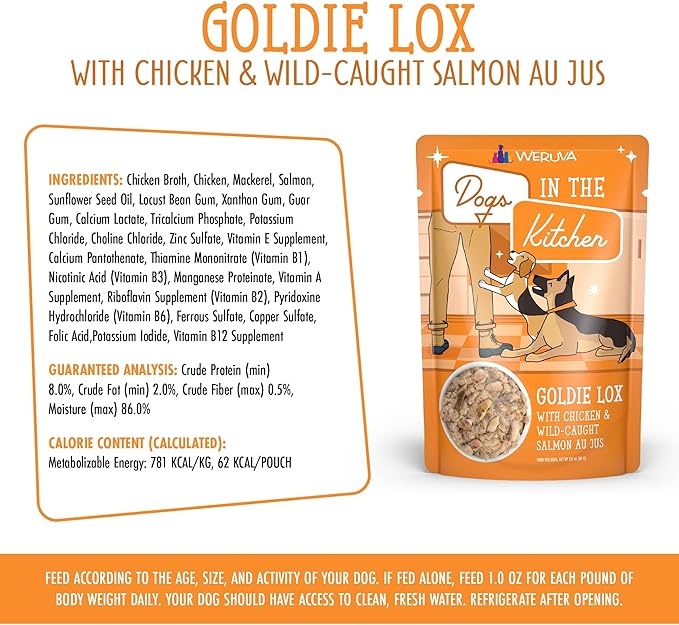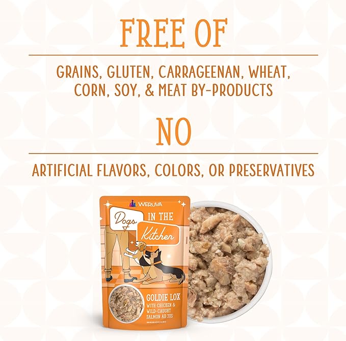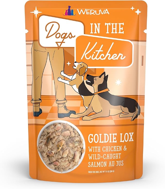 Weruva Dogs in The Kitchen, Goldie Lox with Chicken & Wild-Caught Salmon Wet Dog Food, 2.8oz Pouch (Pack of 12)
