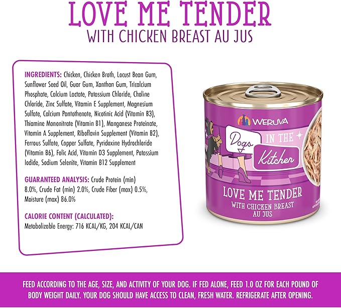 Weruva Dogs in The Kitchen, Love Me Tender with Chicken Breast Wet Dog Food, 10oz Can (Pack of 12)