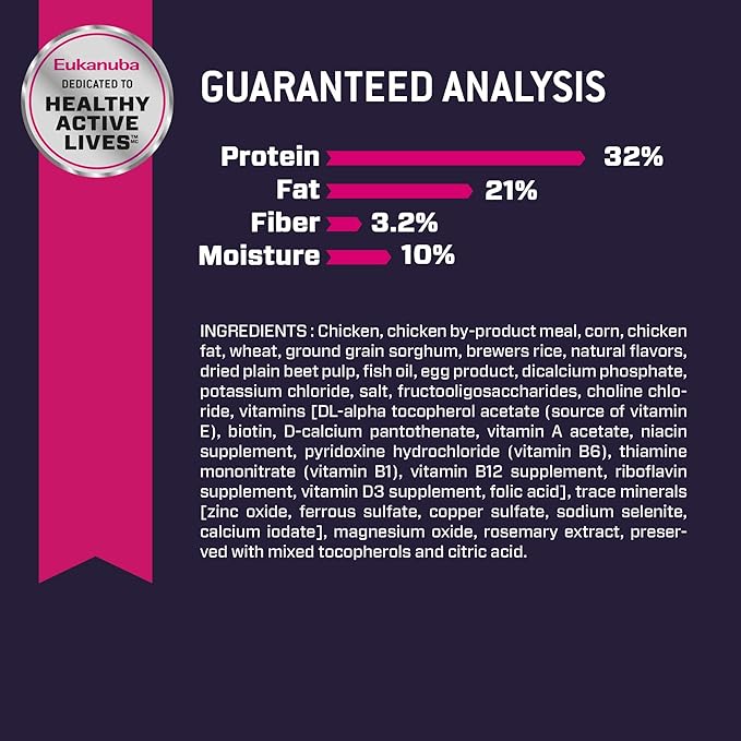 • Supports muscle growth and bone health in active pups with high-quality animal protein and optimal levels of calcium and phosphorous