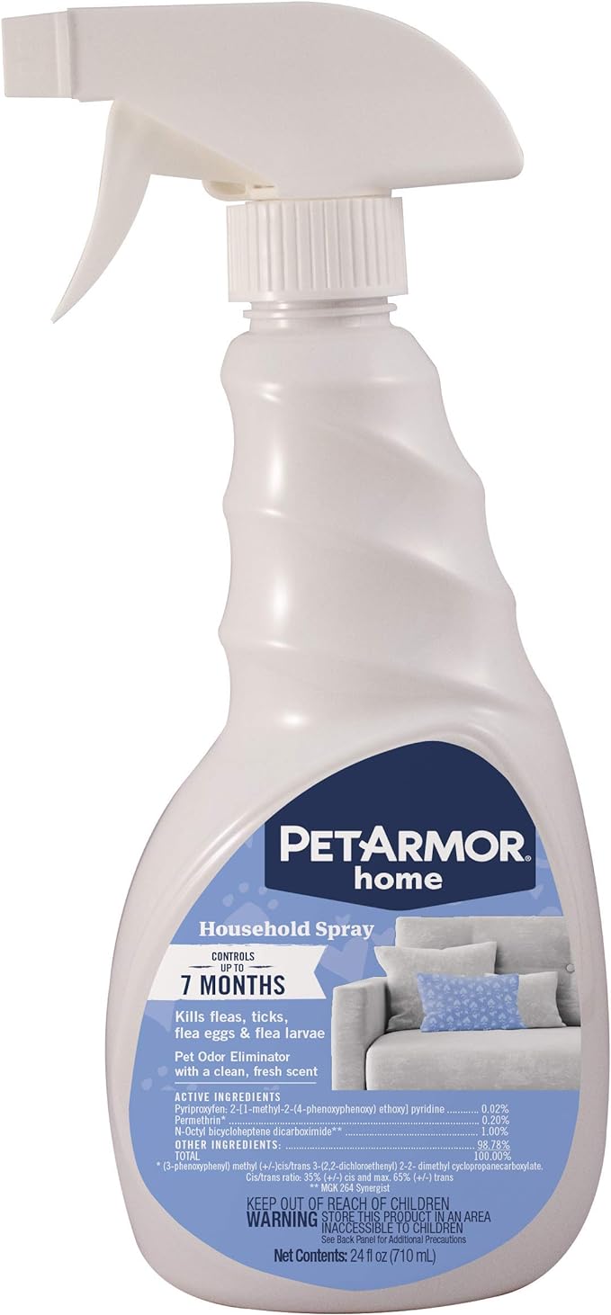 • PetArmor Home Household Spray kills ticks, fleas, flea eggs, and flea larvae for up to 7 months