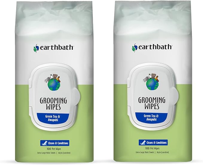 earthbath, Green Tea & Awapuhi Grooming Wipes - Dog Wipes for Paws and Butt, Best Pet Wipes for Dogs & Cats, Made in USA, Cruelty-Free Dog Cleaning Wipes, Removes Dirt & Dander - 100 Count (2 Pack)