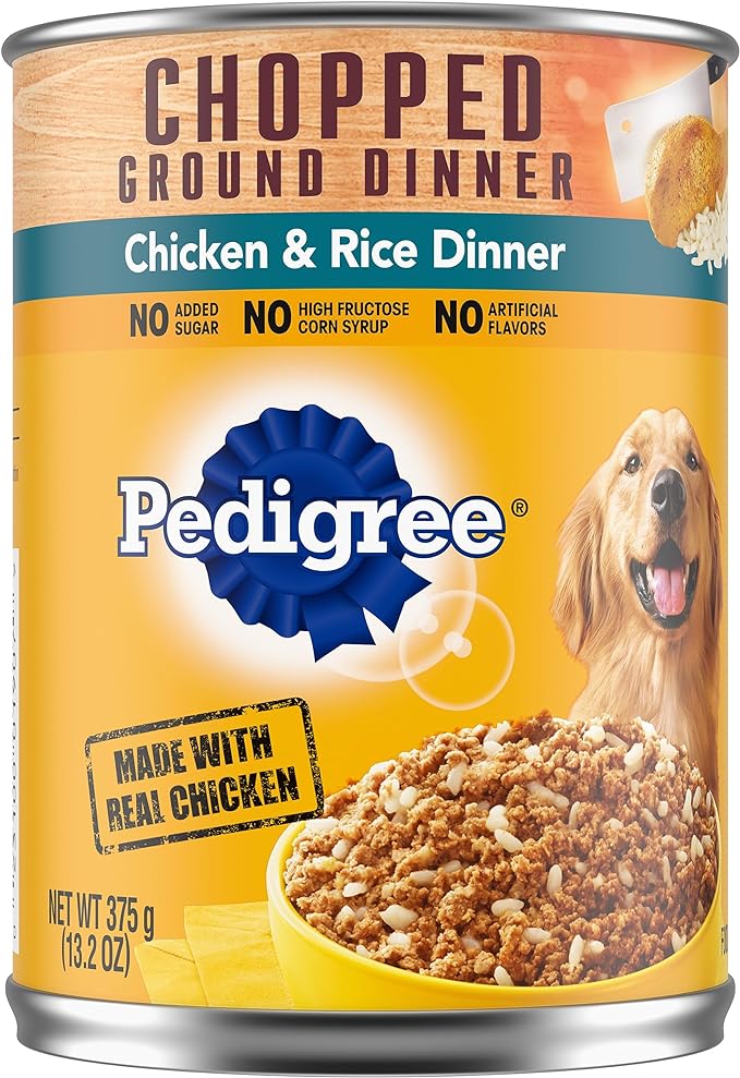 PEDIGREE CHOPPED GROUND DINNER Adult Canned Soft Wet Dog Food, Chicken & Rice Dinner, 13.2 oz. Cans (Pack of 12)