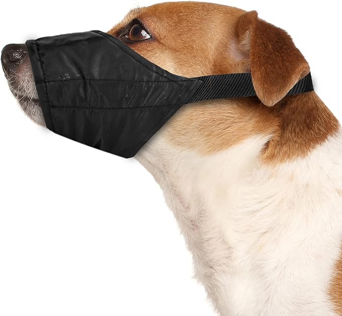 • Quick & Easy - The durable nylon is breathable and washable. Each quick-fit dog muzzle slips on and off with a quick-release buckle and adjustable neck strap