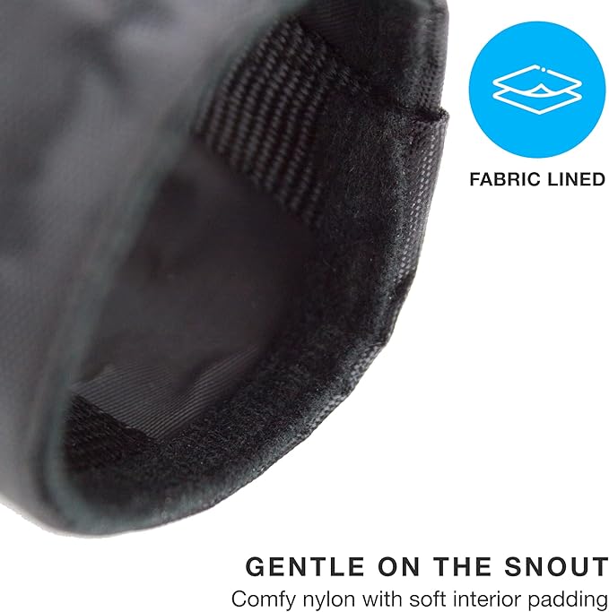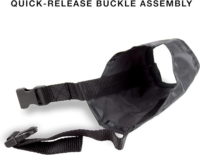 • Quick & Easy - The durable nylon is breathable and washable. Each quick-fit dog muzzle slips on and off with a quick-release buckle and adjustable neck strap