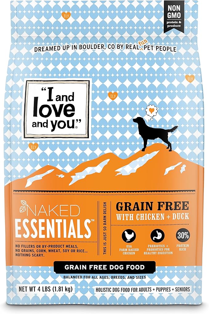 I and love and you Naked Essentials Dry Dog Food - Chicken + Duck - High Protein, Real Meat, No Fillers, Prebiotics + Probiotics, 4lb Bag