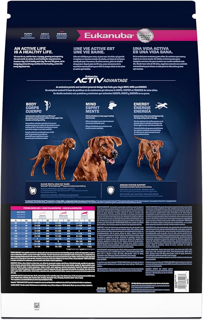 • Helps keep joints mobile and supports lean muscles in active seniors with chondroitin sulfate and 50% more glucosamine (vs. Eukanuba Adult Medium Breed dry dog food)