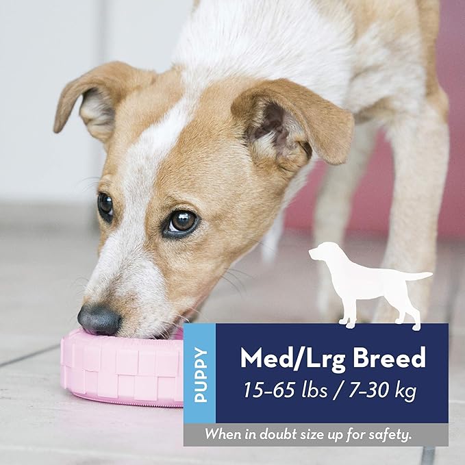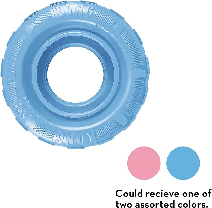 KONG Puppy Tires - Dog Chew Toy for Puppies - Stuffable Dog Toy for Treats & Snacks - Natural Rubber Chew Toy for Teething Puppy - for Medium/Large Puppies - Assorted Colors