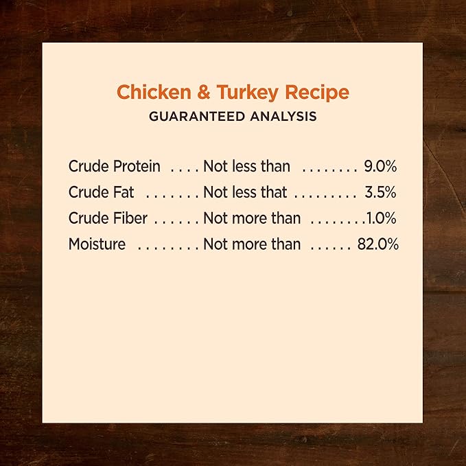 • CHICKEN & TURKEY: This natural wet food for adult dogs is made with real chicken and turkey for complete, balanced nutrition. Wet food features rectangular, flat protein pieces served in light gravy.
