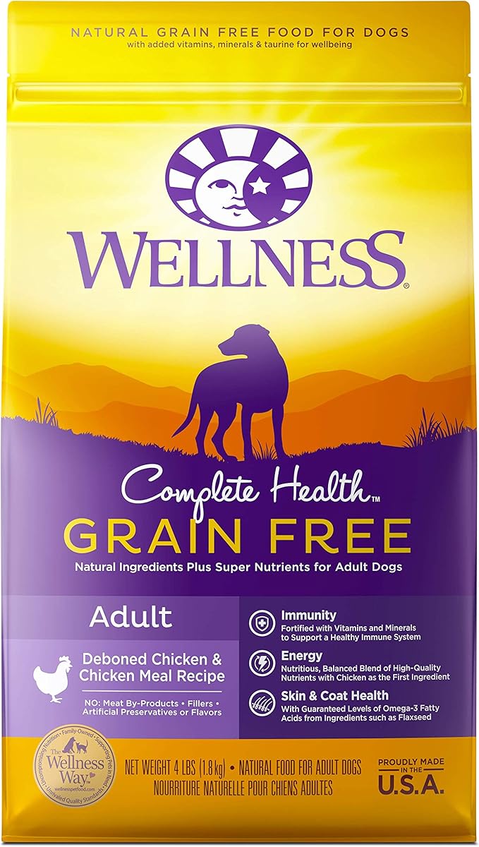 Wellness Complete Health Grain-Free Dry Dog Food, Natural Ingredients, Made in USA with Real Meat, For All Lifestages (Chicken, 4-Pound Bag)