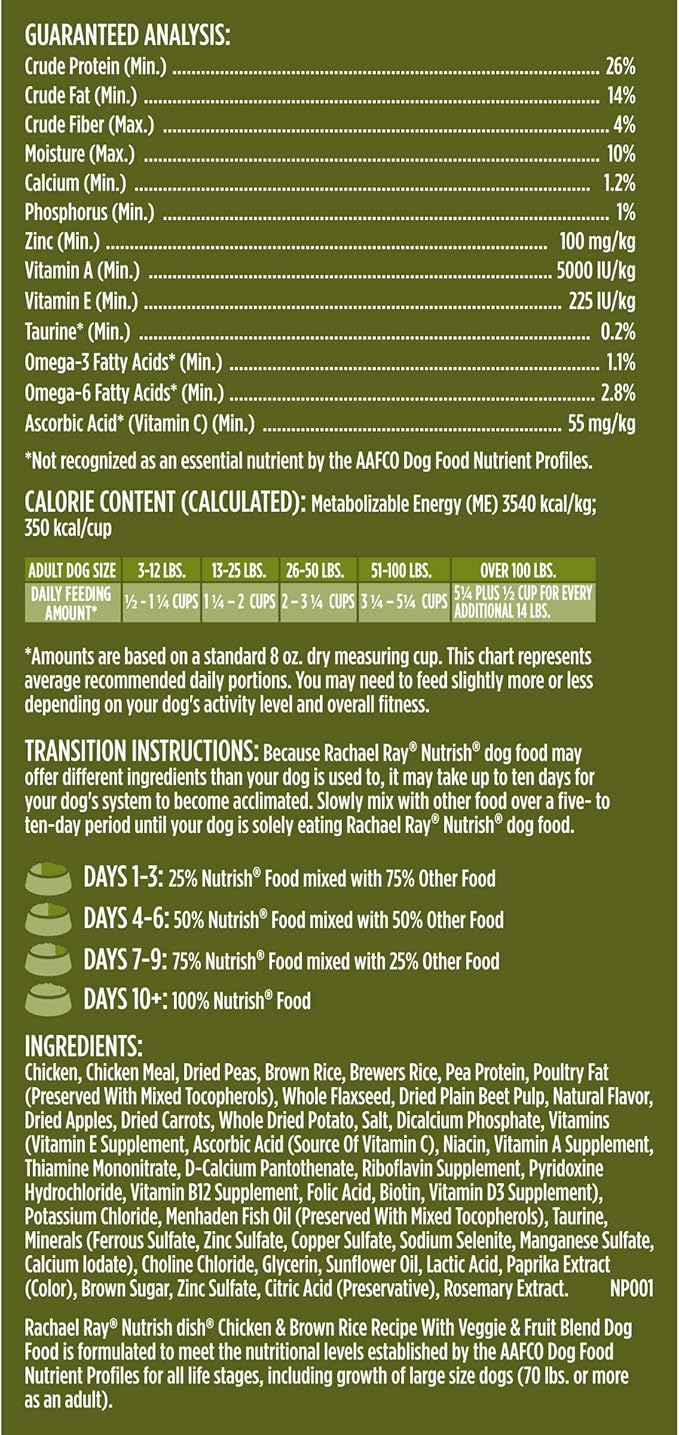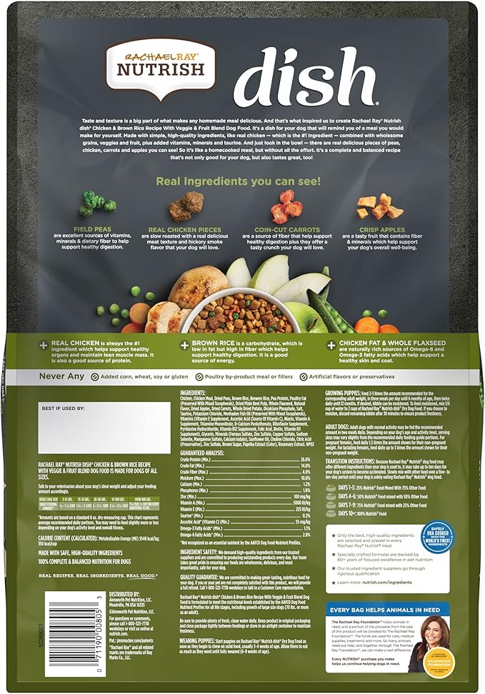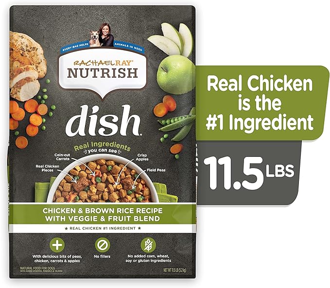 Rachael Ray Nutrish Dish Premium Natural Dry Dog Food with Added Vitamins, Minerals & Taurine, Chicken & Brown Rice Recipe with Veggies & Fruit, 11.5 Pound Bag