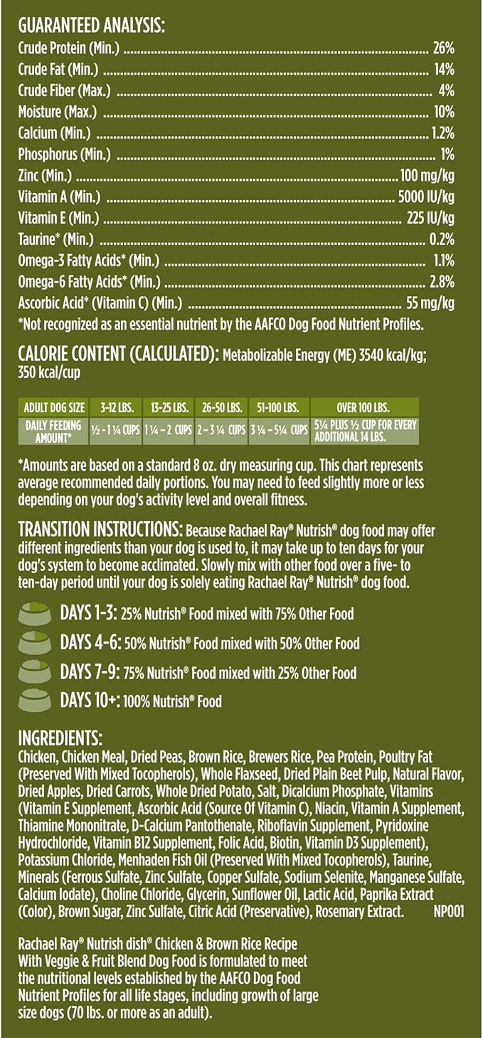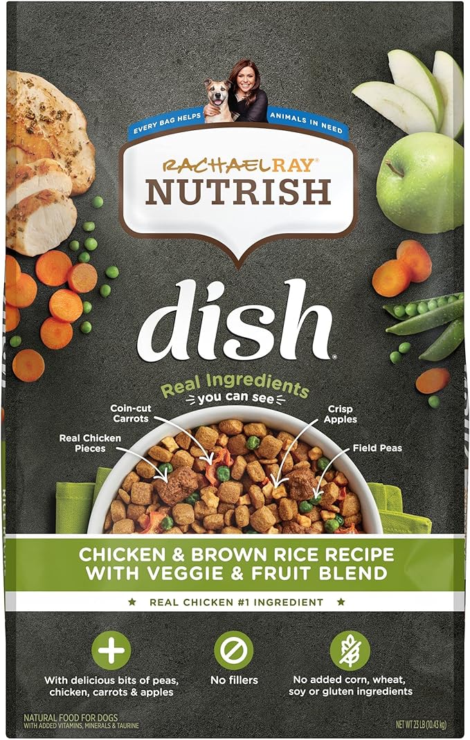 Rachael Ray Nutrish Dish Premium Natural Dry Dog Food with Added Vitamins, Minerals & Taurine, Chicken & Brown Rice Recipe with Veggies & Fruit, 23 Pound Bag