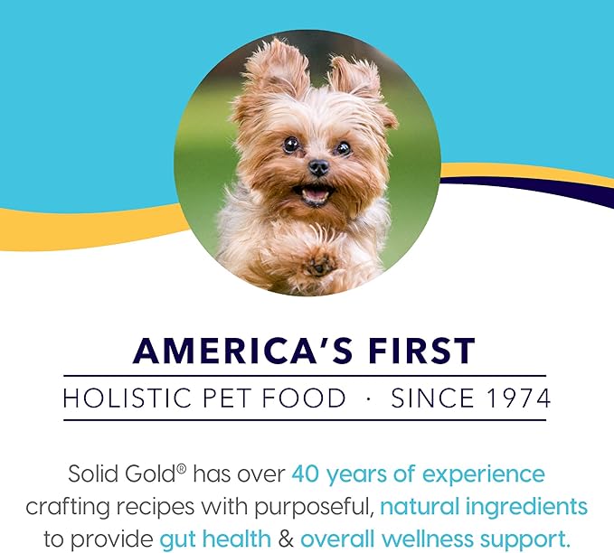 • AMERICA'S FIRST HOLISTIC PET FOOD - Solid Gold has been delivering transformative nutrition for your pet since 1974, crafting recipes with functional superfoods, omega fatty acids, high quality proteins, and protected probiotics to support gut health and overall well being