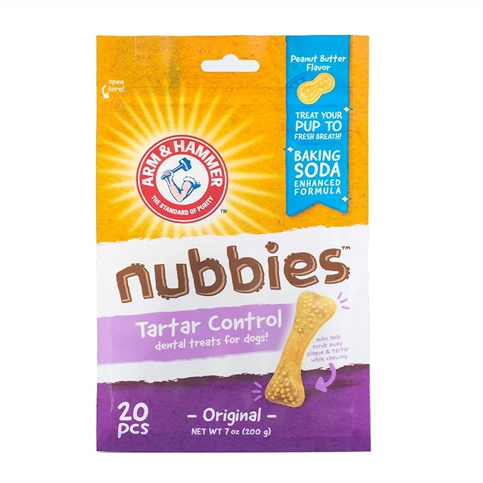 Arm & Hammer for Pets Nubbies Dental Treats for Dogs | Dental Chews Fight Bad Breath, Plaque & Tartar Without Brushing | Peanut Butter Flavor, 20 Count