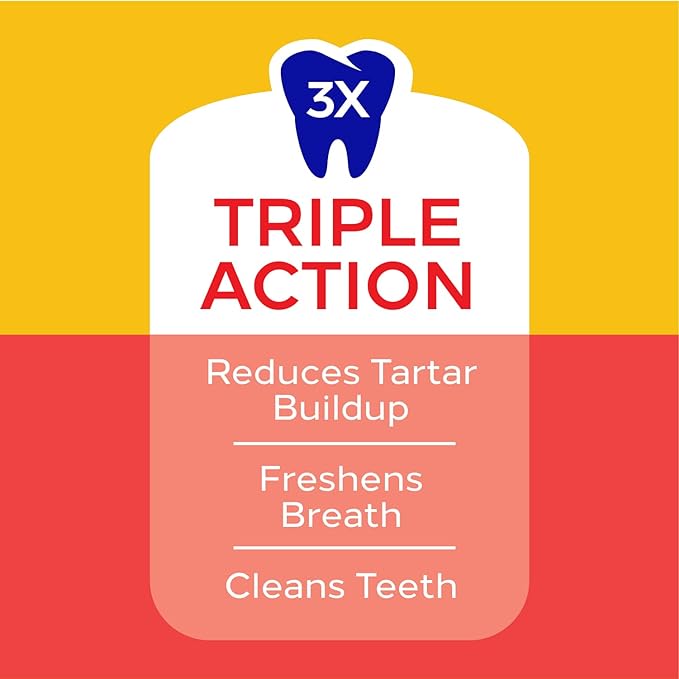 • PEDIGREE DENTASTIX Triple Action acts as a dog breath freshener that works to clean teeth and freshen breath, and has a clinically proven texture that reduces plaque and tartar buildup