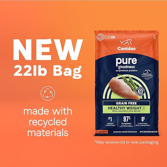 • Contains 1- 22 lb. Bag of Canidae Pure Weight Management Chicken and Pea Recipe Dry Dog Food