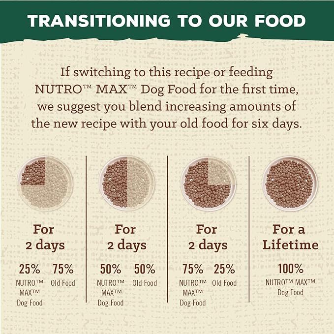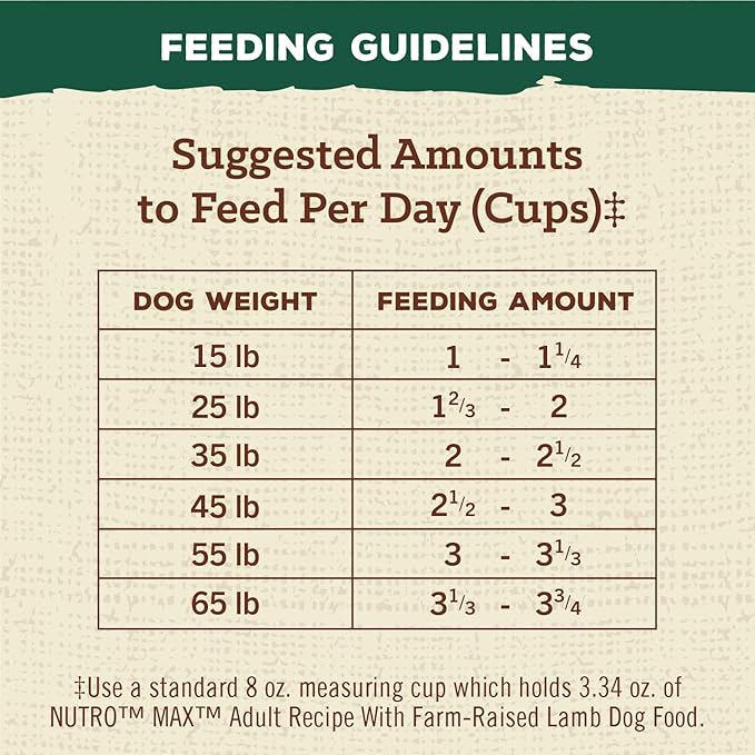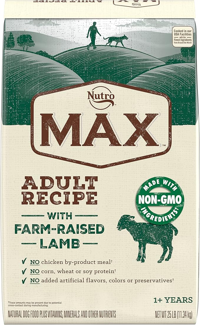 • 25 LB Bag: Contains 1 25 LB bag of NUTRO MAX Adult Recipe Dry Dog Food With Farm-Raised Lamb