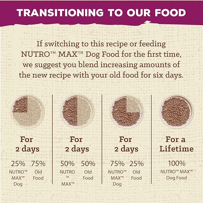 • 25 LB Bag: Contains 1 25 LB bag of NUTRO MAX Adult Recipe Dry Dog Food With Farm-Raised Chicken