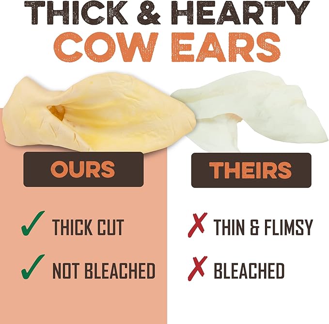 Premium Cow Ears For Dogs, Thick Cut & All-Natural Whole Ears, 100% Grass Fed Beef, No Additives Or Hormones, Safe Rawhide Alternative, Great Dog Treat Alternative To Pig Ears, Bully Sticks, Dog Bones