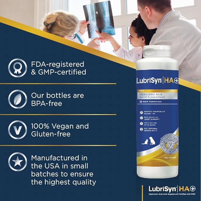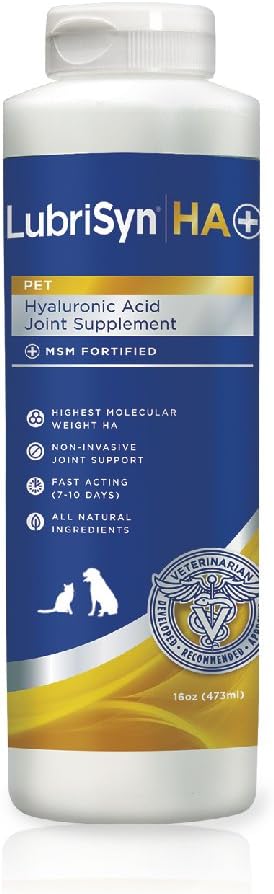 LubriSyn Hyaluronic Acid + MSM Joints Supplement, 16oz: Natural Pure HA Liquid Dog and Cat Joint & Cartilage Support, Relief, and Lubrication for Pets Including Dogs, Cats and Horses, Vegan Formula