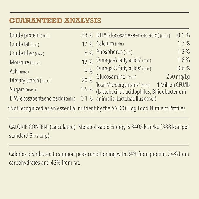 • Protein-rich animal ingredients are balanced with wholesome fruit and vegetables for nutritious, high-fiber dog food with probiotics to support healthy digestion