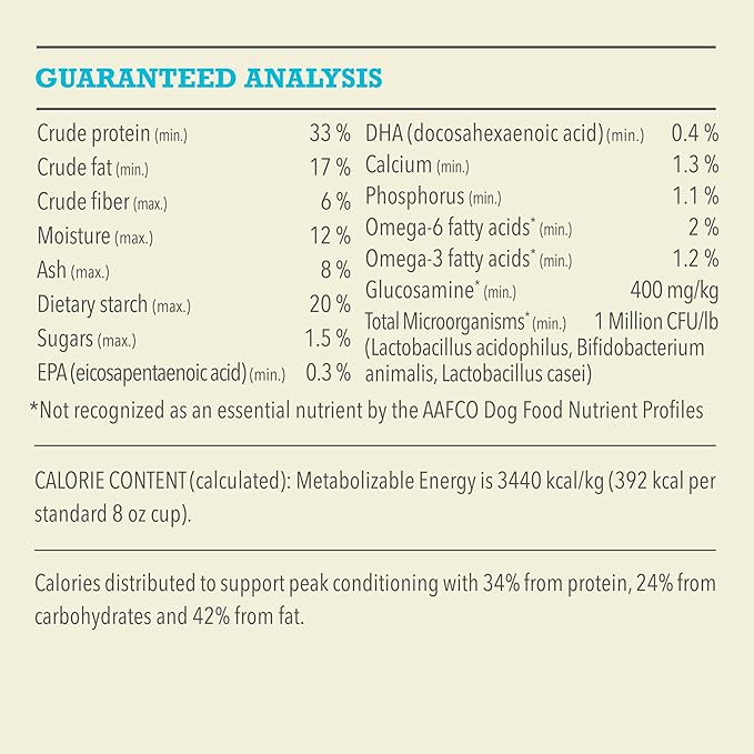 • High protein dog food recipe features 70 percent** animal ingredients and 30 percent*** wholesome fruits, vegetables