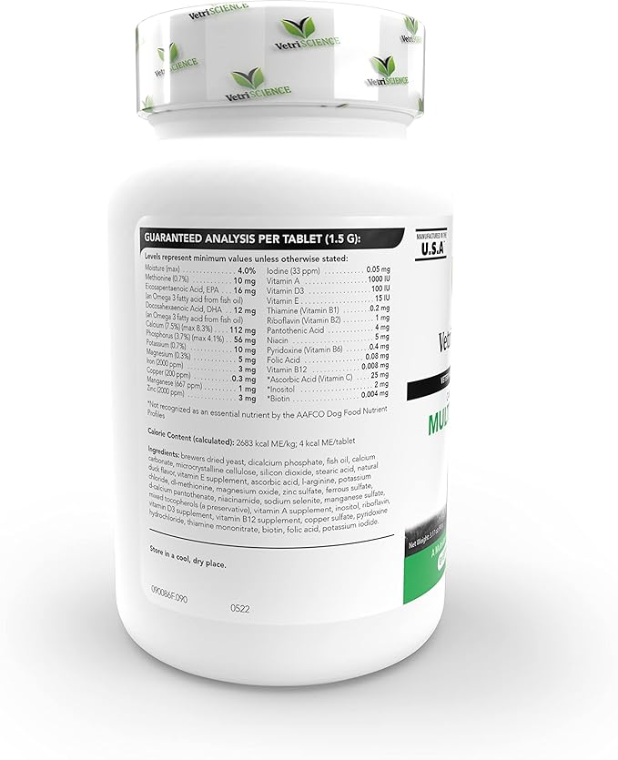 VETRISCIENCE Canine Plus MultiVitamin for Dogs - Vet Recommended Vitamin Supplement - Supports Mood, Skin, Coat, Liver Function, 90 Tablets