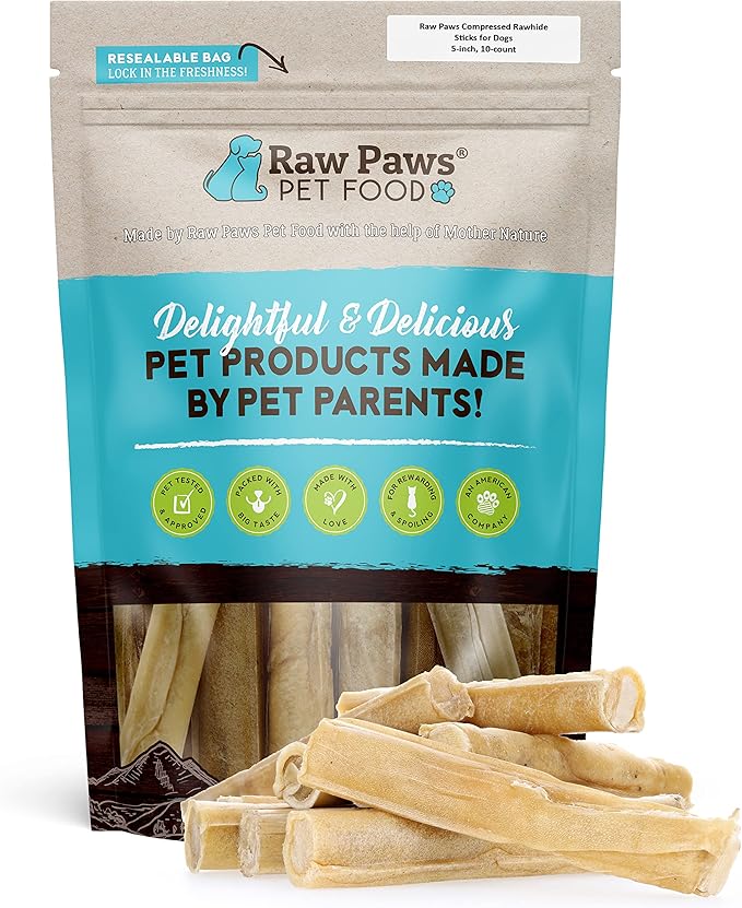 Raw Paws 5-inch Compressed Rawhide Rolls for Dogs, 10-ct - Packed in The USA - Pressed Rawhides for Dogs - Free-Range Raw Dog Hide Chews - Natural Rawhide Dog Chew Sticks for Puppies & Small Dogs