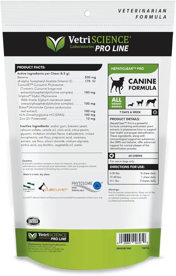 VetriScience Pro Hepaticlear Pro Liver Supplement for Dogs, 60 Chews