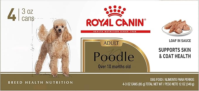 • Royal Canin Poodle Adult wet dog food is designed to meet the nutritional needs of purebred Poodles 10 months and older
